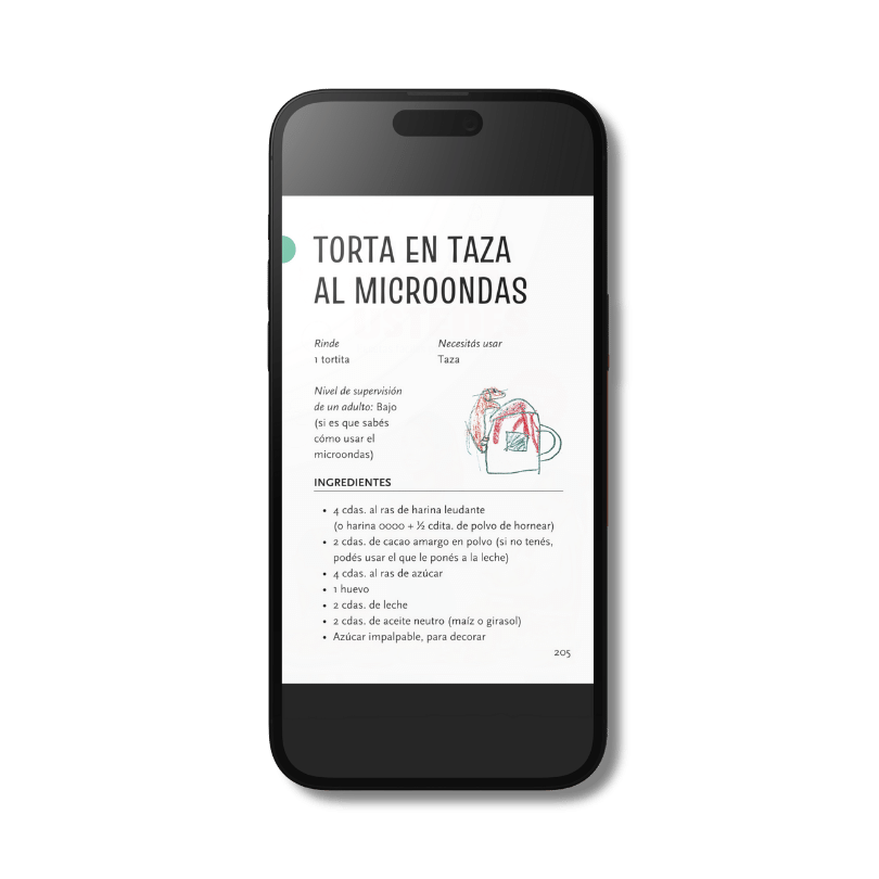 Es un ebook pensado y diseñado especialmente para que niños y niñas exploren en la cocina por primera vez. Siempre bajo supervisión de un adulto responsable, y si la receta lo requiere, se incluirá una advertencia.