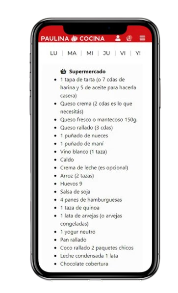 • Una lista de compras cada viernes para que tengas todo listo para la semana próxima y empezar a cocinar sin que te falte nada.